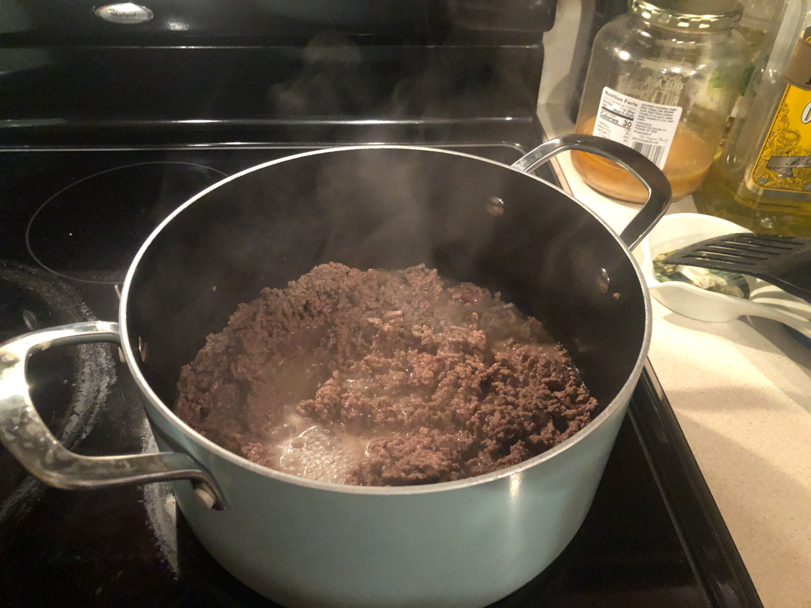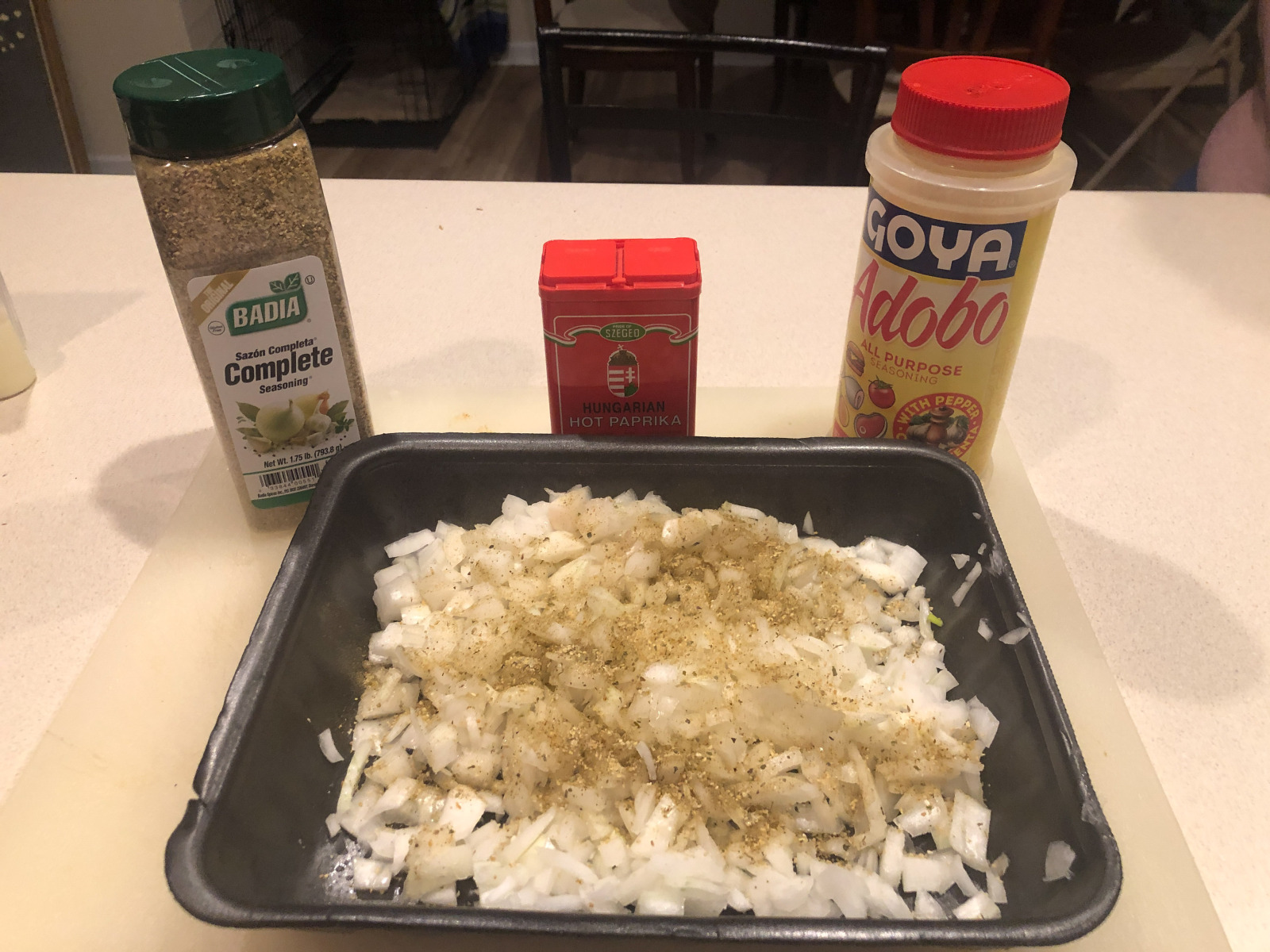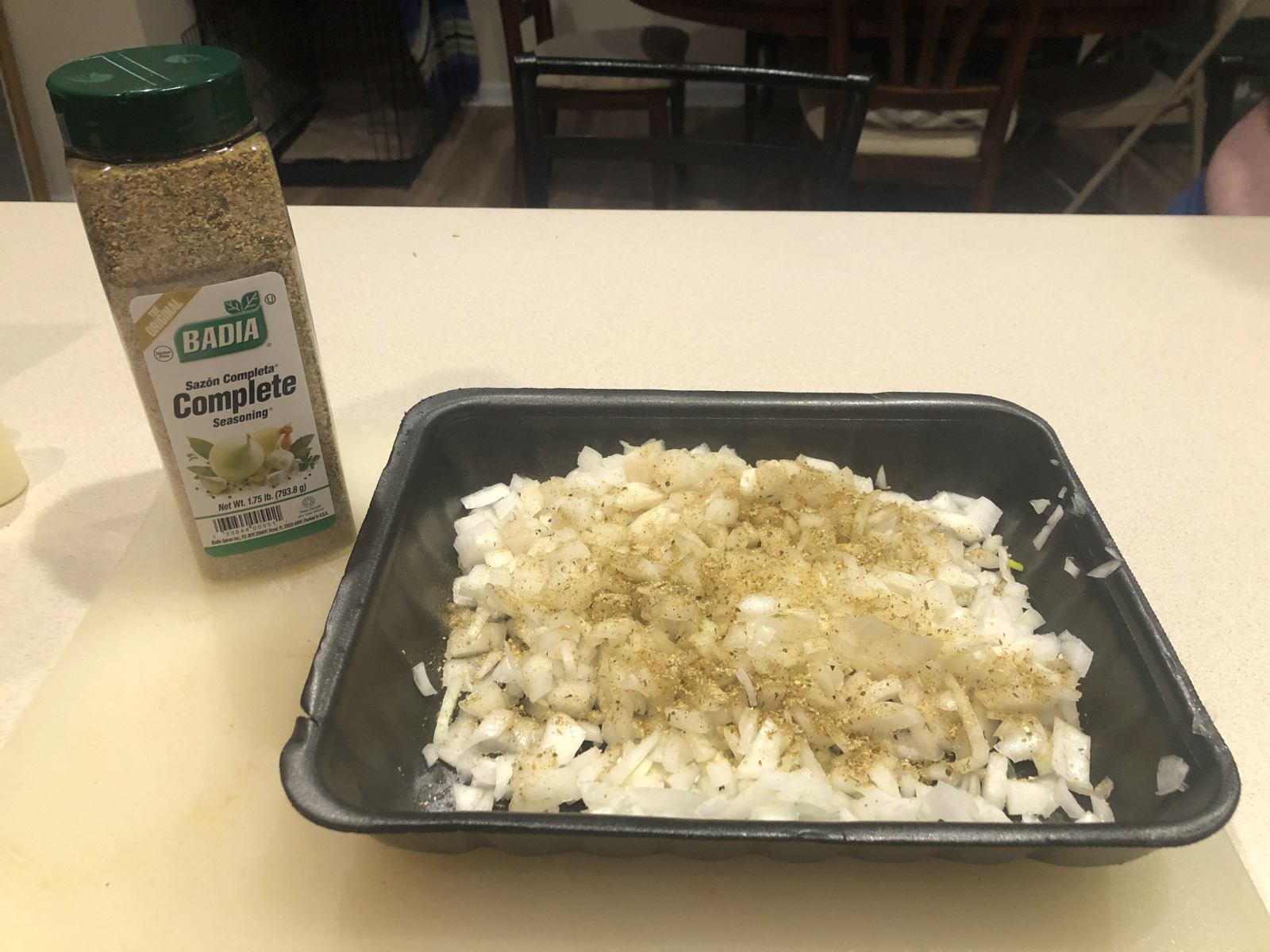 I’ll admit that I did chicken out and grab a container of the regular Old El Paso taco seasoning I’ve used for decades and offered Nick the choice of me doing half the ground beef and onions with each seasoning or just going all-in on the sazón.