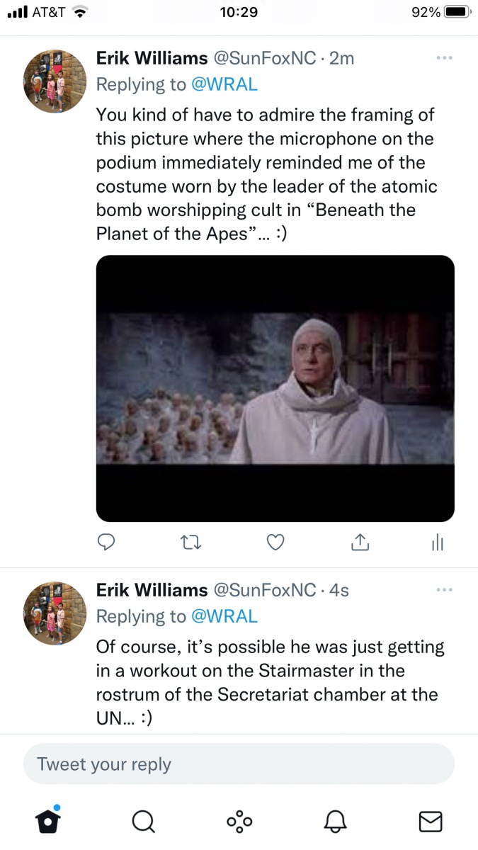 From the “Sometimes the Jokes Write Themselves” Dept: 28 Nov 2021 Doing the News This gallery responding to a recent tweet from WRAL was pretty much shooting fish in a barrel. Finding amusement in this world isn’t hard and sometimes the jokes just write themselves… 🙂 Continue Reading Previous PostFrom the “May Your Light Multiply And Fill the World” Dept:Next PostFrom the “Basil Fawlty Truly Appreciates the Day I’ve Had” Dept: