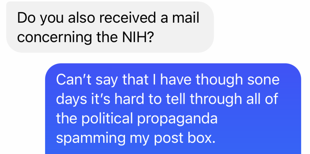 Ah…the push to action after another attempt from them to convince me that somehow the NIH is not actually a constituent part of the federal government.