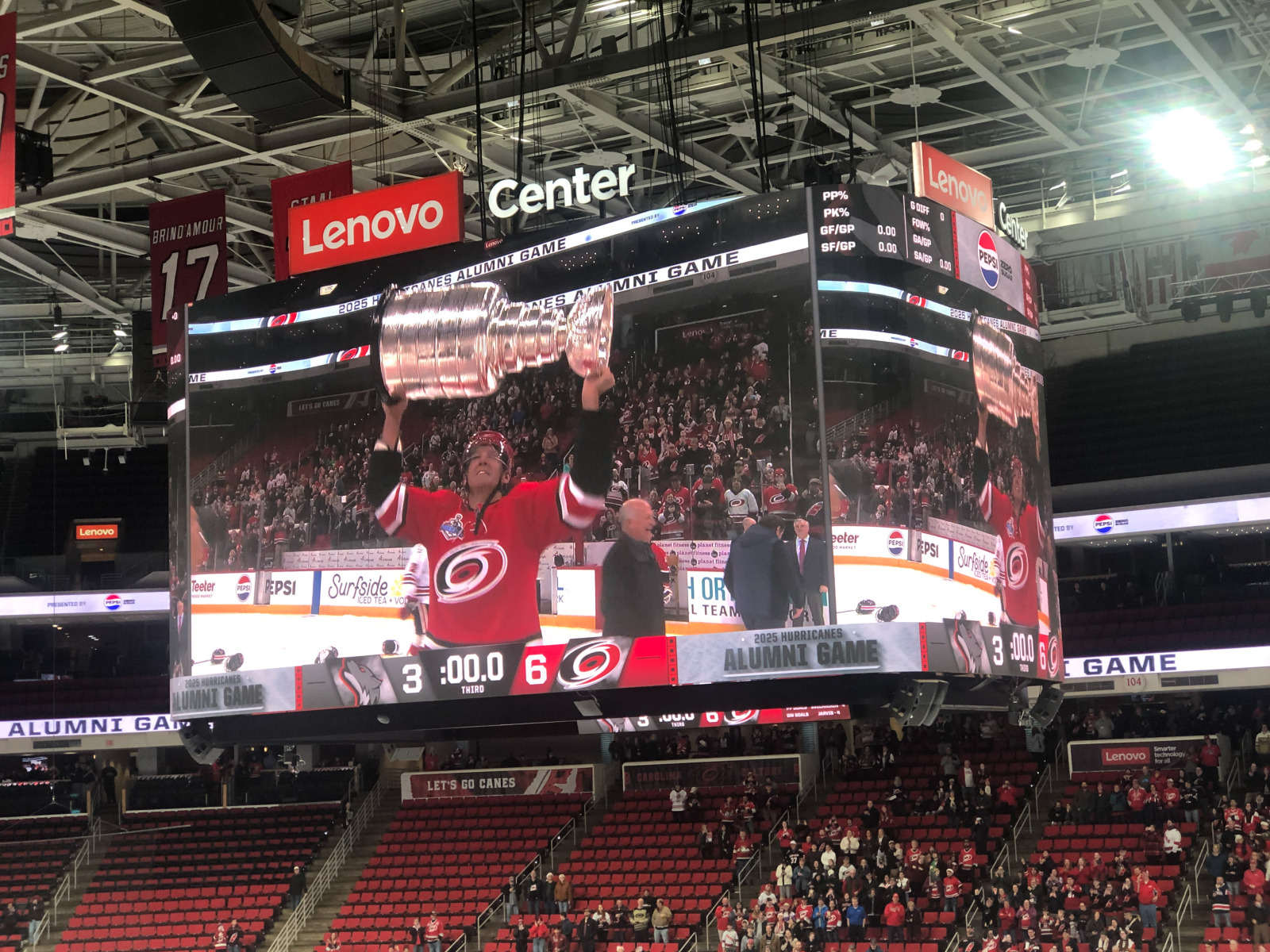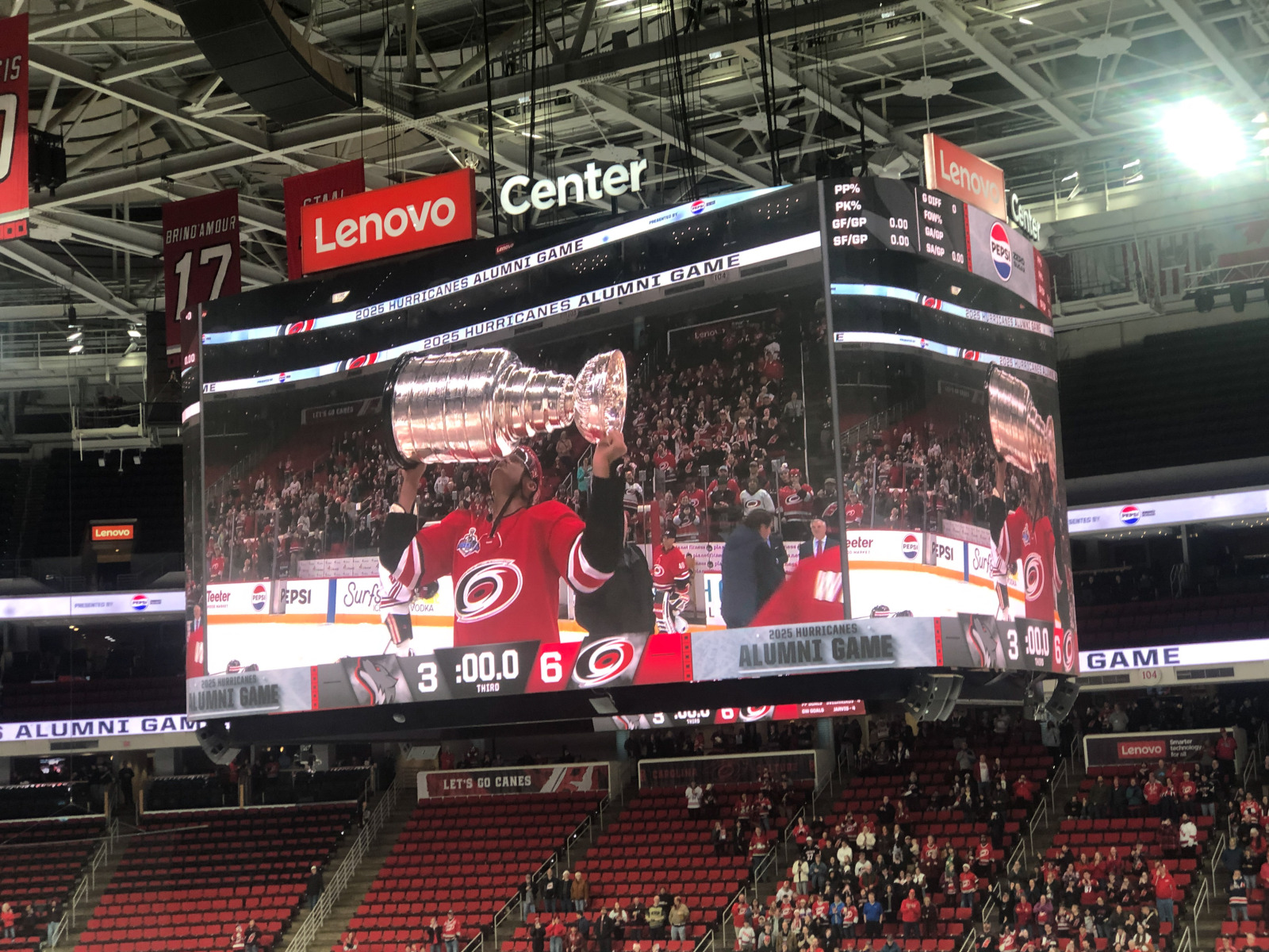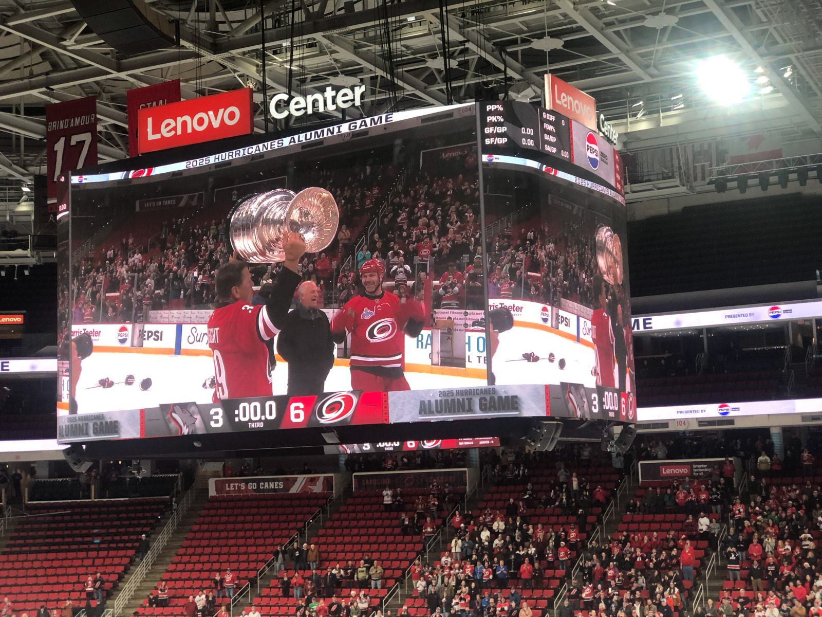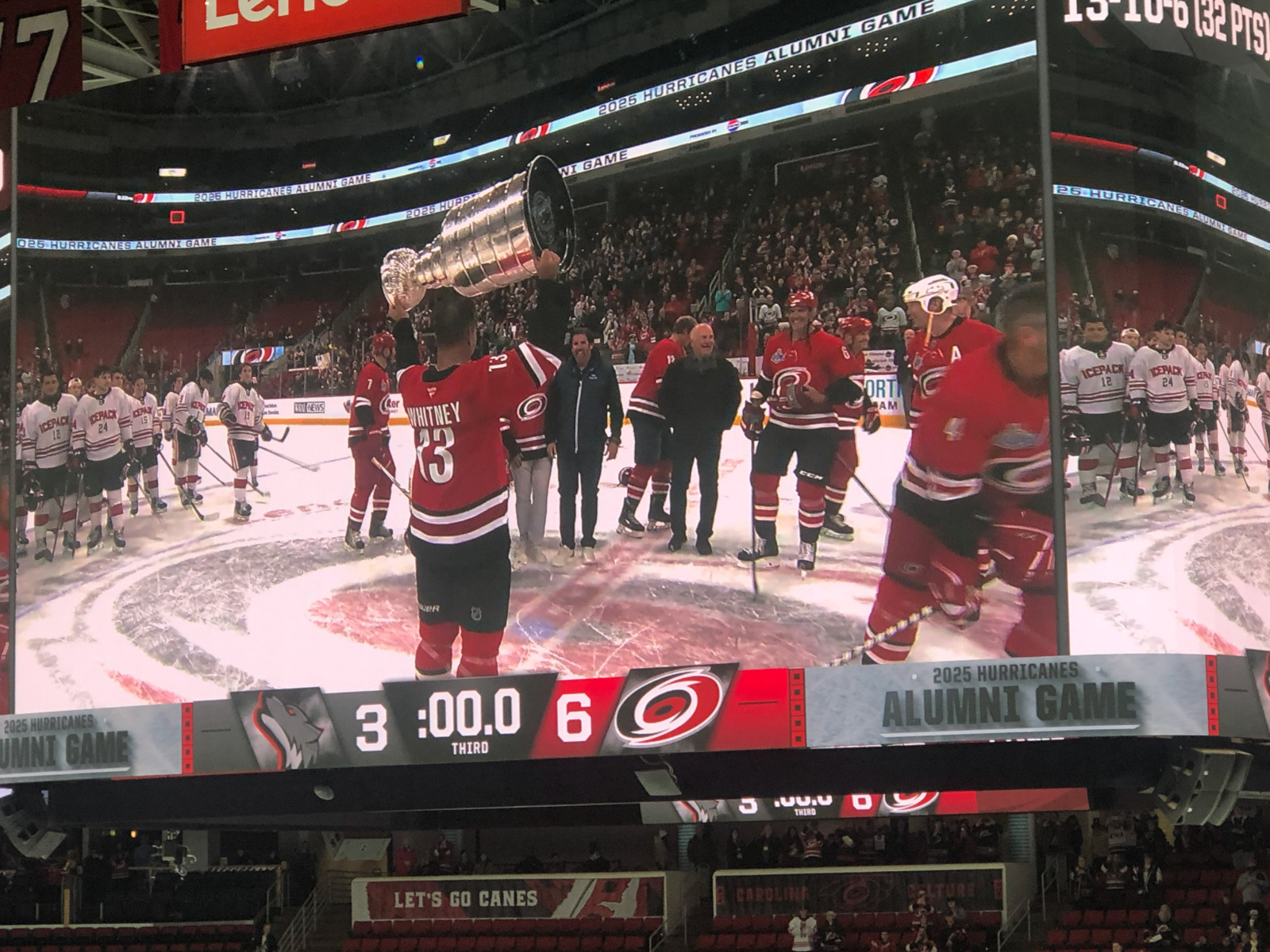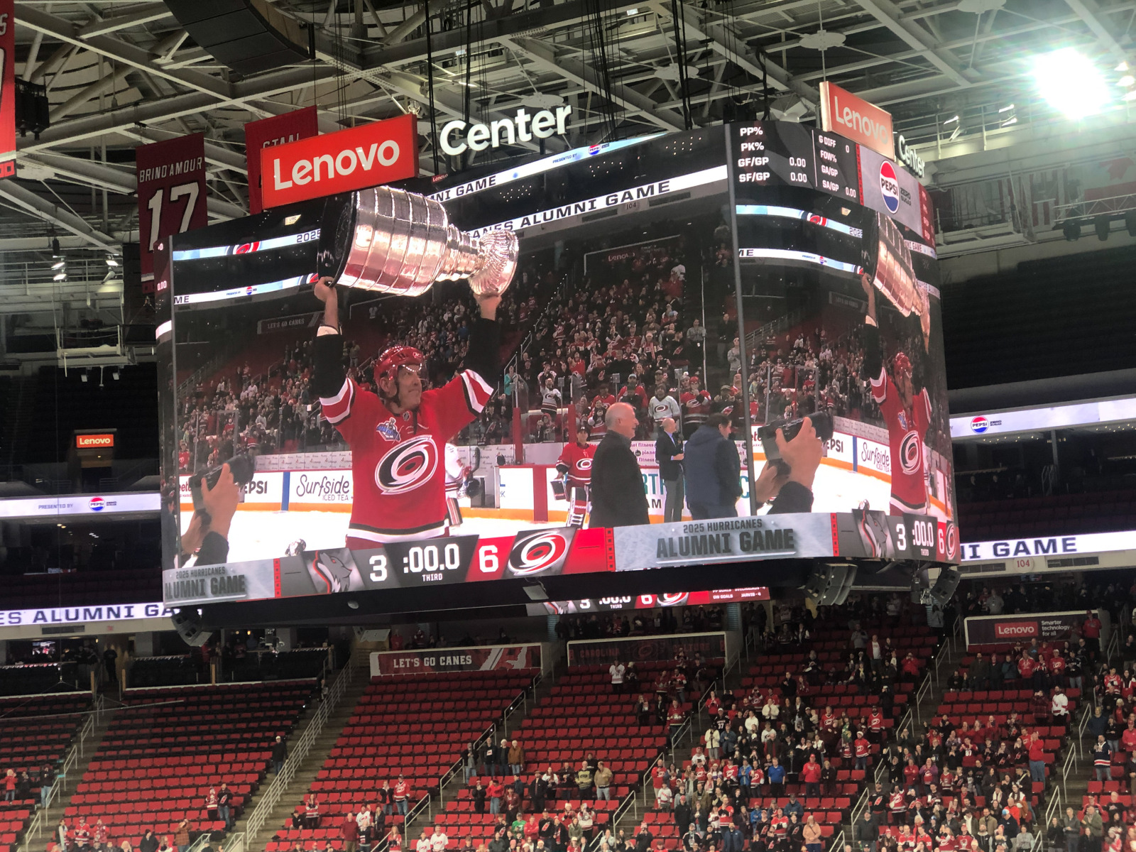 Even though it was clear that they were running the game time faster than last year to get us back out on the roads before they got in a truly appalling state, it was still a joy to see cherished Hurricanes from years gone by some 20 years after many of them hoisted the team’s only Stanley Cup.