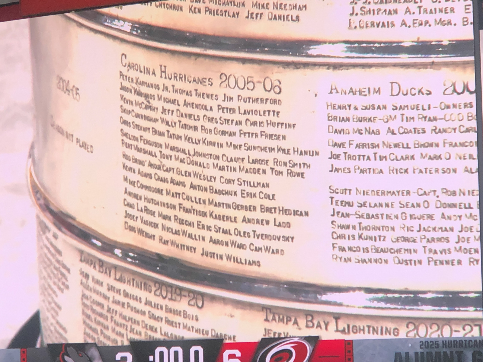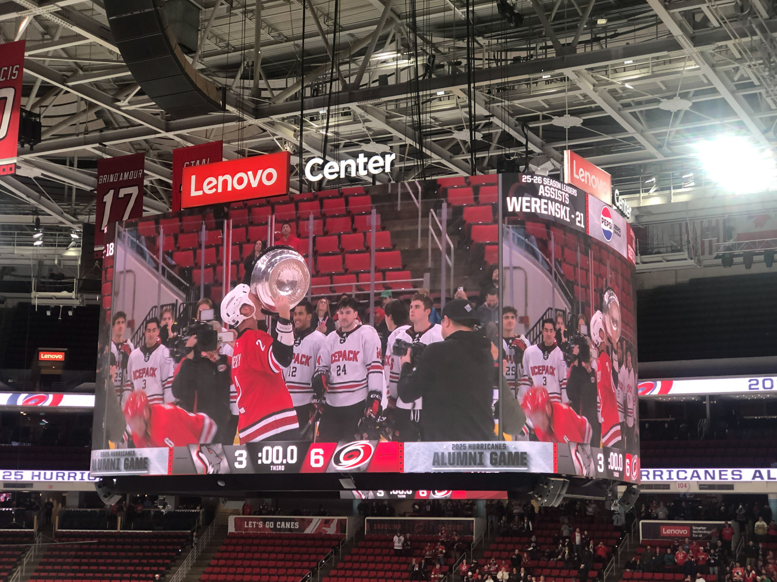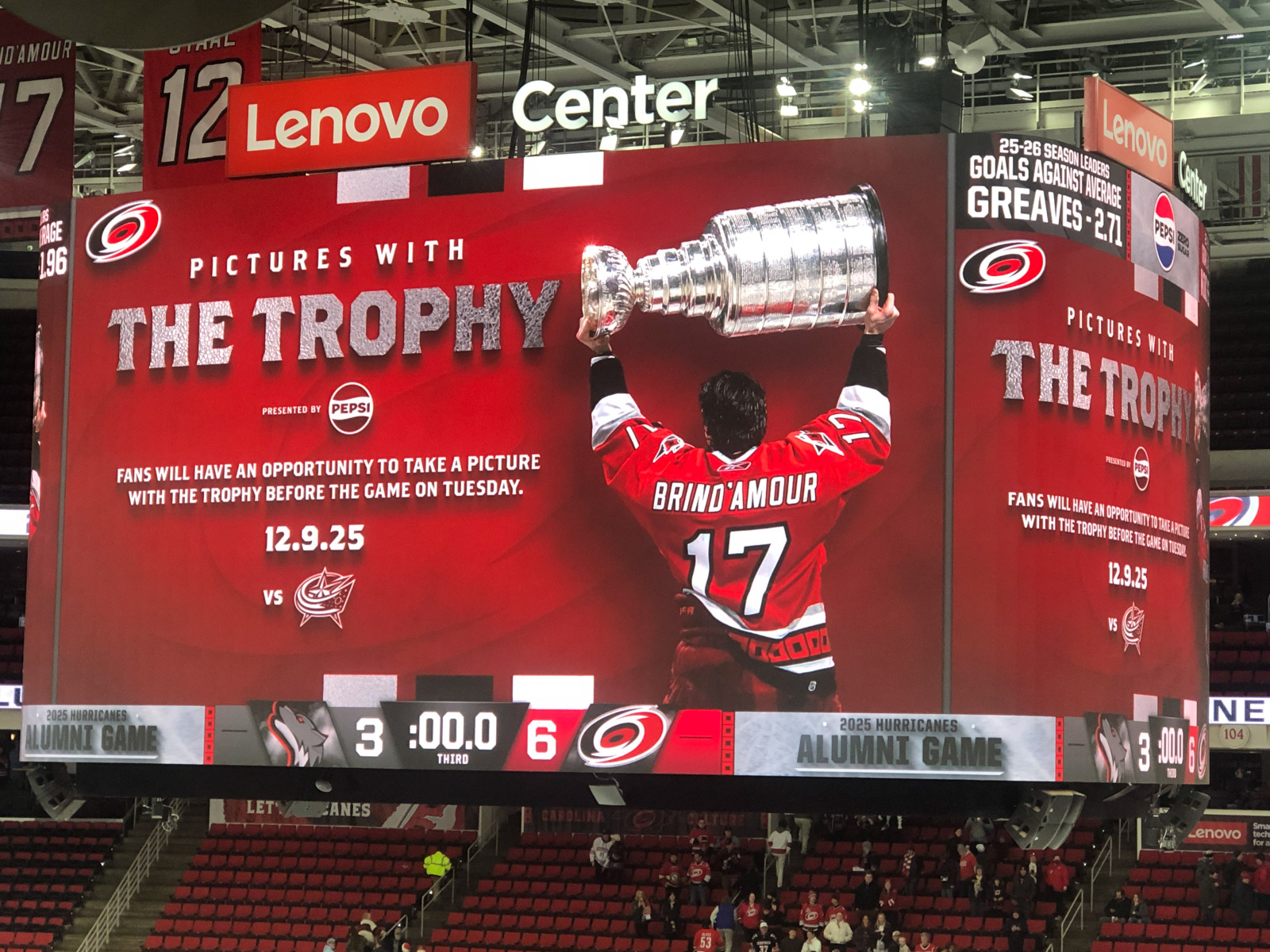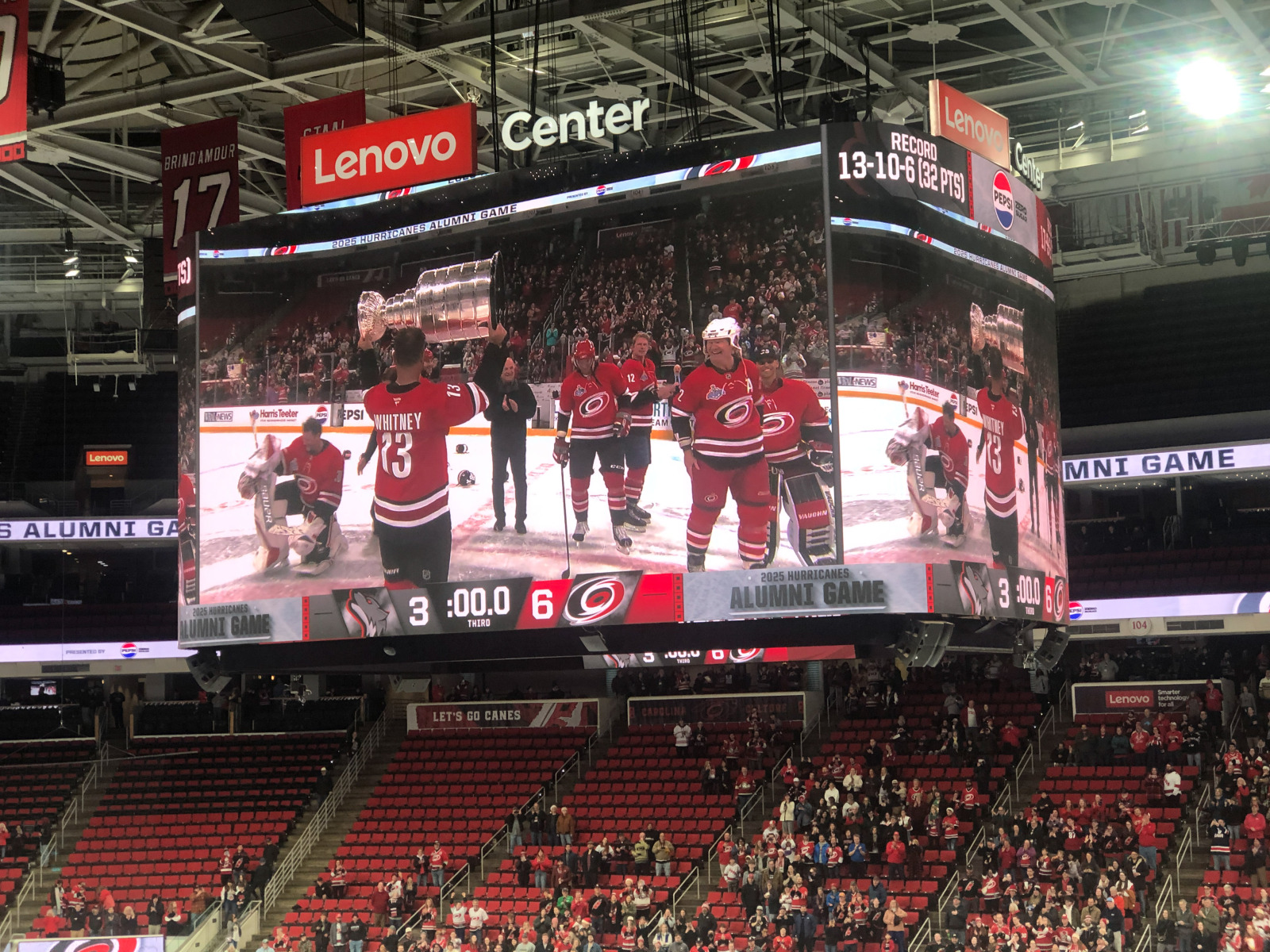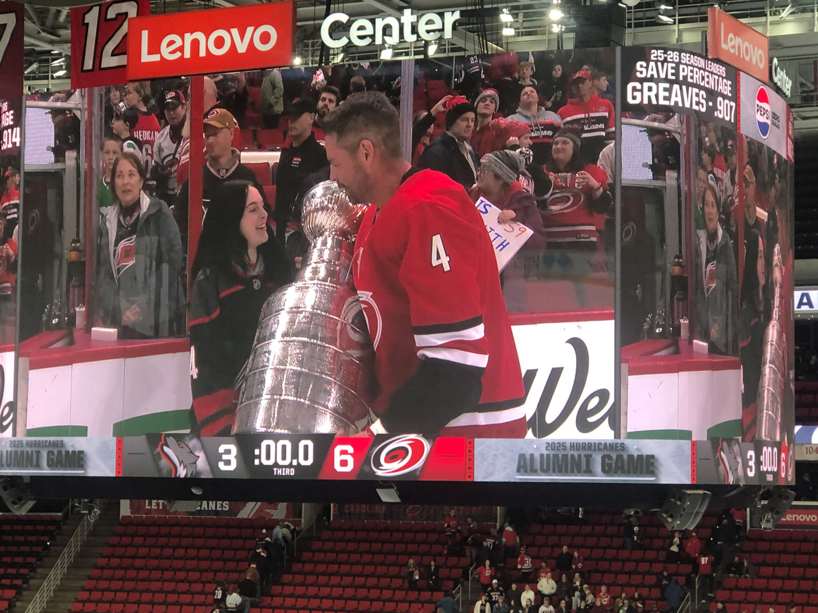 Even though it was clear that they were running the game time faster than last year to get us back out on the roads before they got in a truly appalling state, it was still a joy to see cherished Hurricanes from years gone by some 20 years after many of them hoisted the team’s only Stanley Cup.